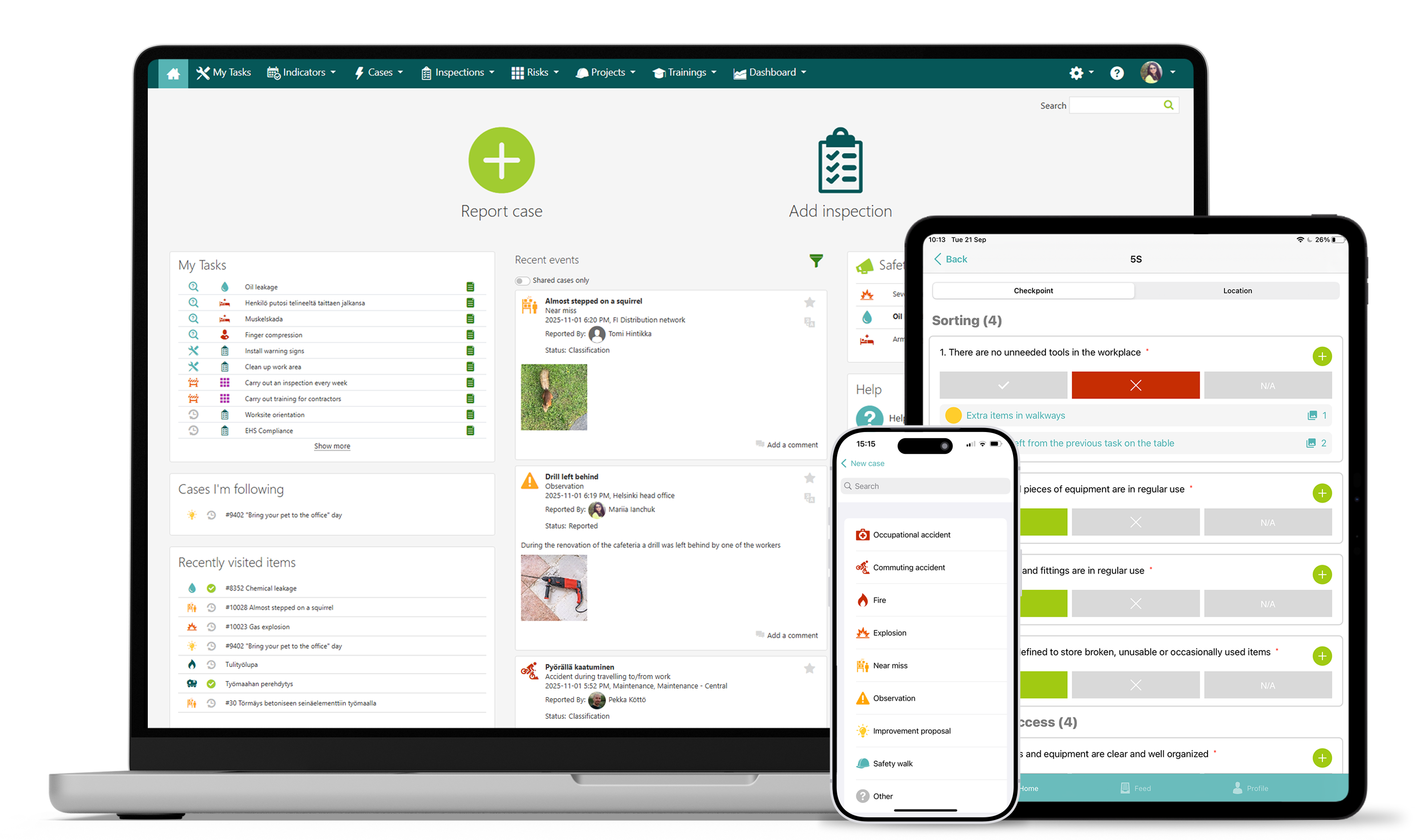 We offer a cloud-based solution for health, safety, environment and quality management, providing the best tools for the entire process. From handling observations, near misses and incidents to risk management and advanced analytics. From inspections and audits to corporate-wide gap analysis. From reporting environmental deviations to collecting data for annual sustainability reports.